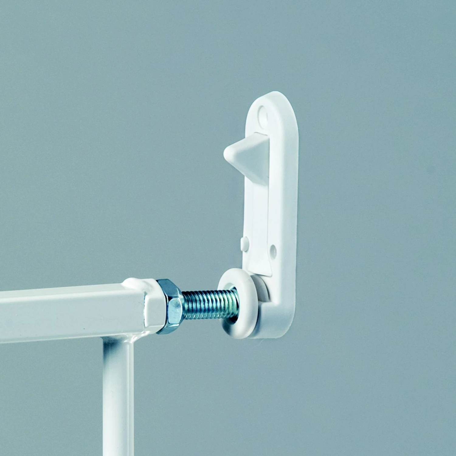 - Hardware mounted for an ultra-secure fit, this gate is specially designed for the top of the stairs, but can be used in any hallway or doorway and the quick release hardware allows the gate to be easily removed when not needed.