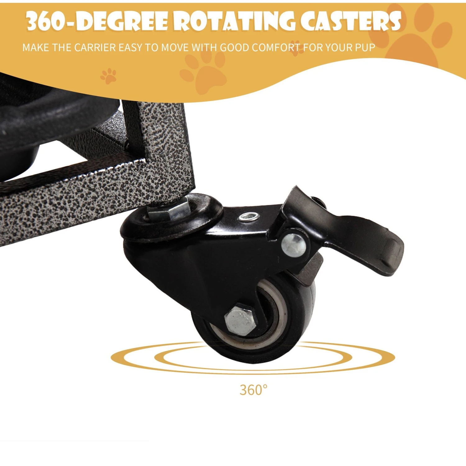 Give your furry friend a place to call her own. The Coziwow by Jaxpety Double Door Dog Crate offers a spacious and safe dog crate to snuggle in around the house. This sturdy crate is made from galvanized tubes with a pet-friendly powder finish and its classic look can fit into any home design. Slide bolts work on both the top and front doors to offer you easy access inside the crate. Easily transport it throughout the house thanks to the four wheels underneath. Lock them into place when you’ve found the right spot. The bottom tray helps you clean up any dust, dirt or accidents. Convenience meets coziness with the Coziwow by Jaxpety crate!