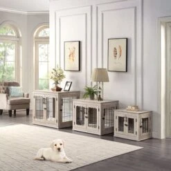 Unipaws Furniture Corner Dog Crate With Cushion, Weathered Grey