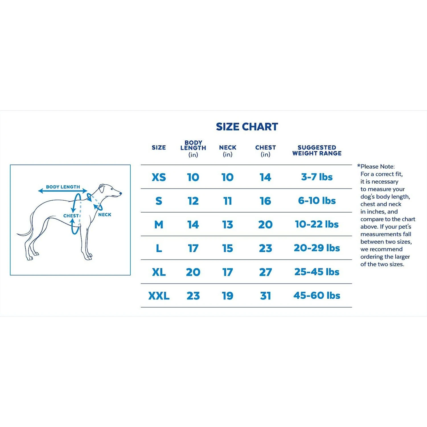 Intended to be used for short duration, under close supervision. Always supervise pet to ensure they do not destroy or ingest product. May contain small parts. Not suitable for children. Inspect regularly and replace if any part becomes damaged. For the perfect fit, measure your pet carefully when selecting a size from the Size tab. Sizing recommendations per breed are only guesstimates, since no two dogs are exactly alike.