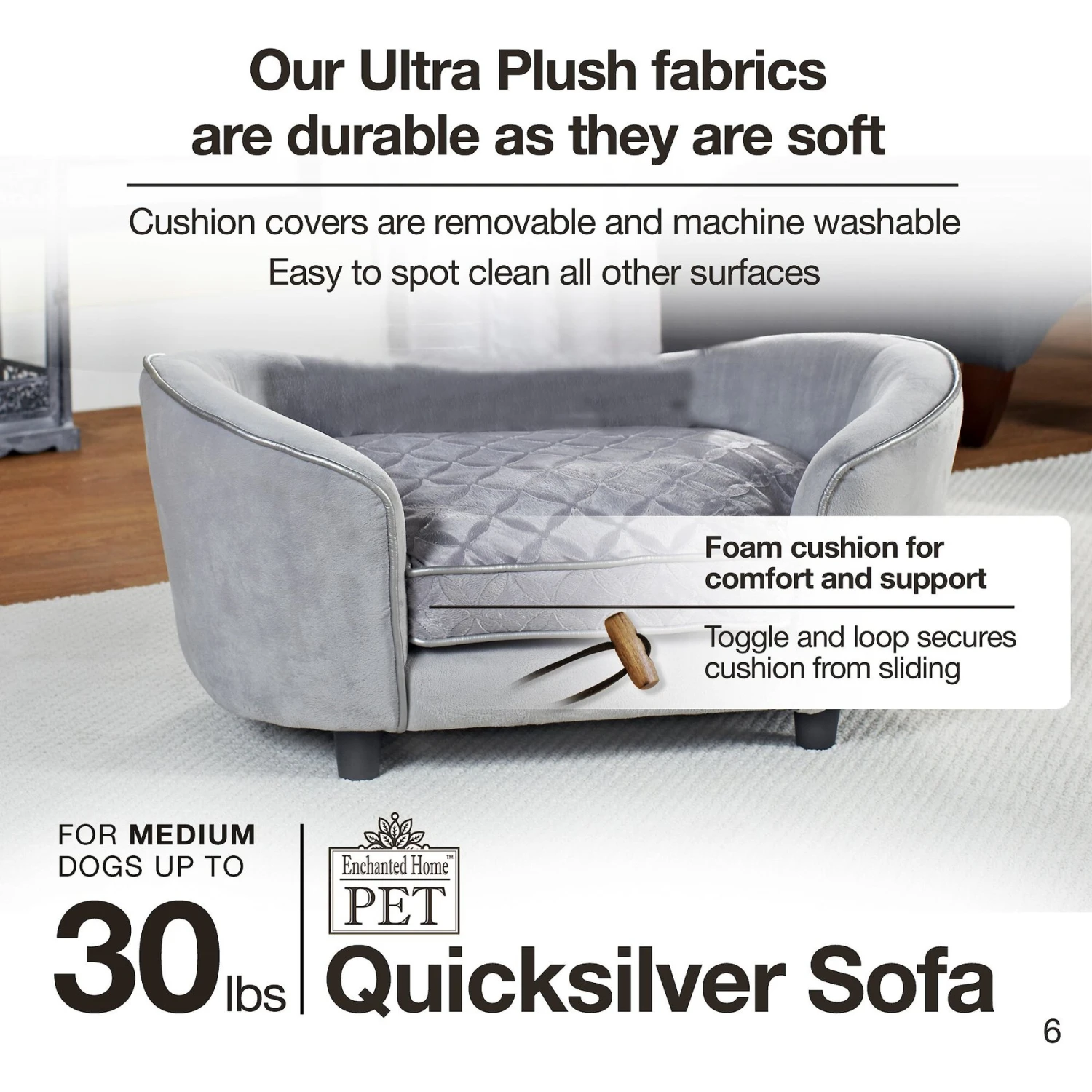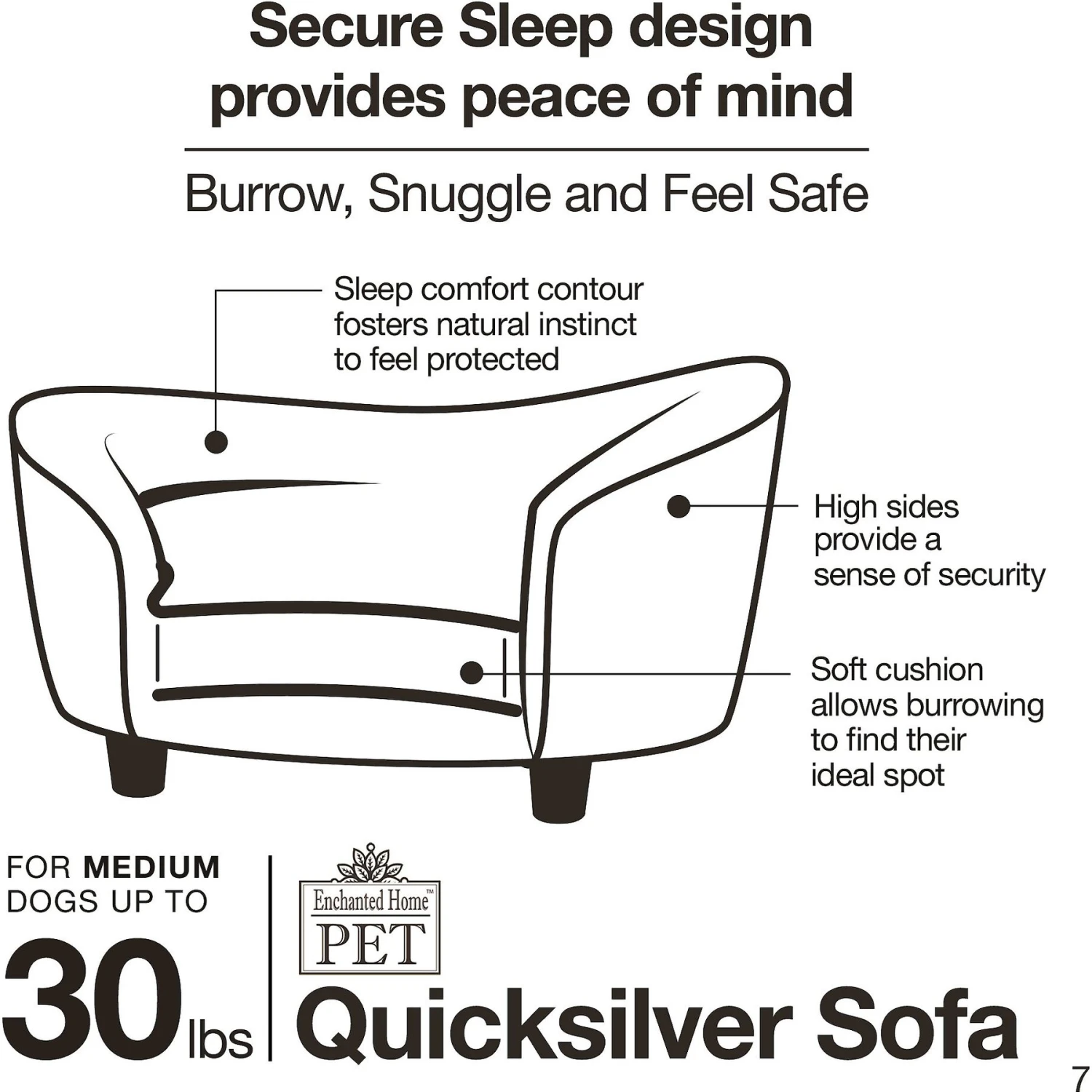 Even the most mercurial buddies will melt comfortably into the Quicksilver Pet Sofa. Featuring a high-loft cushion, plush fabric and supportive sides, this luxurious bed surrounds your best friend in comfort and style. It’s got a removable cushion with a washable cover, raised feet to lift your pet off the ground and a pocket to hold lots of toys. With durable, furniture-grade construction that’ll keep it looking great for ages, this comfy pet couch can support pets to up to 30 pounds.