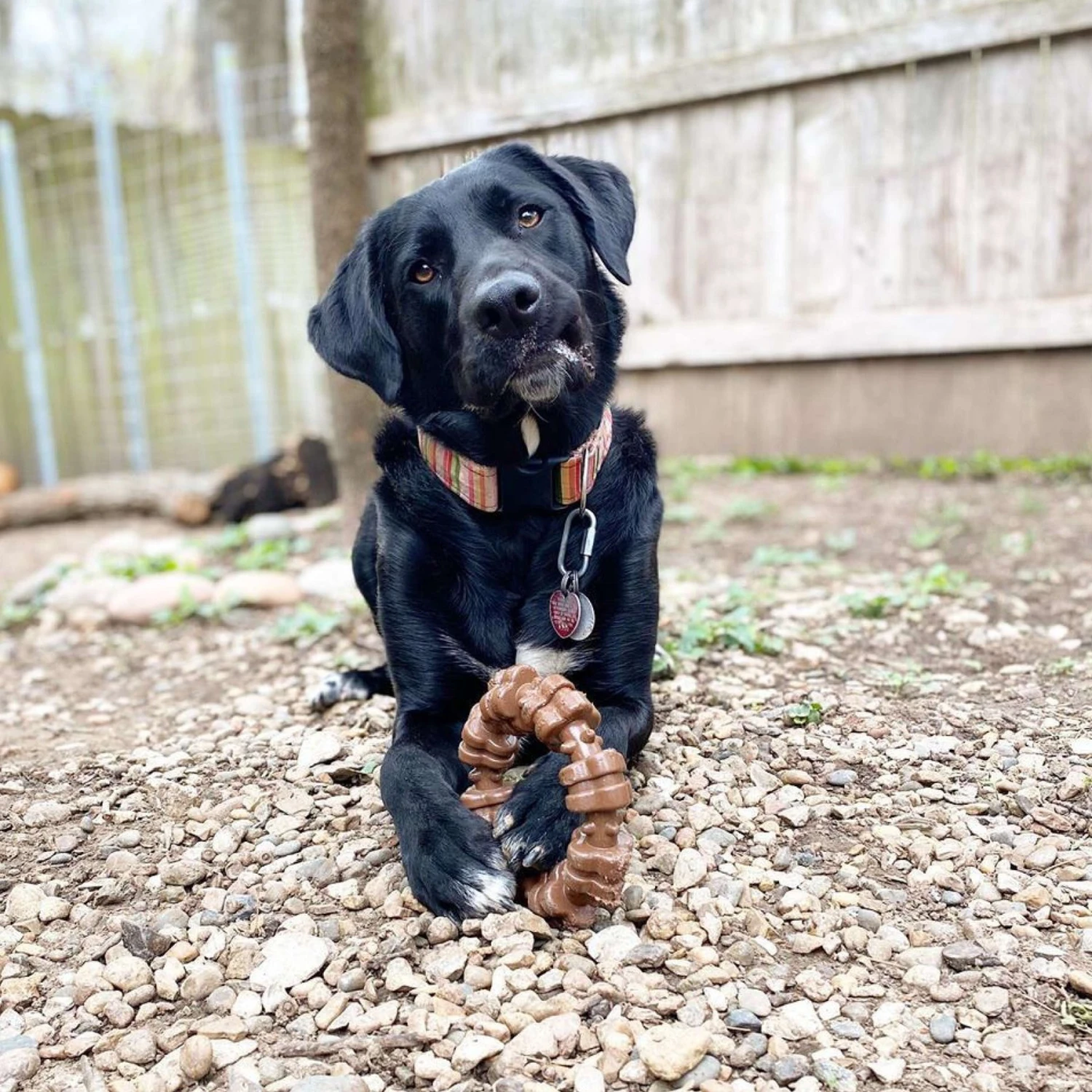 Nylabone DuraChew Textured Ring Flavor Medley Dog Toy, X-Large—A chewy chicken toy that’s just as good for chasing as it is for chewing? Four paws up! The Nylabone DuraChew Plus Textured Ring Dog Chew Toy is a disc-shaped chew toy tough enough for chewing for hours on end. Pet parents can roll it across the floor to give their pal something to pounce. The Textured Ring promotes healthy teeth and gums by removing plaque and tartar buildup as he chews. With multiple ridges and grooves for added chewing appeal, this vet-recommended chew toy just may keep your favorite sneakers from becoming your pet’s next chew-thing.