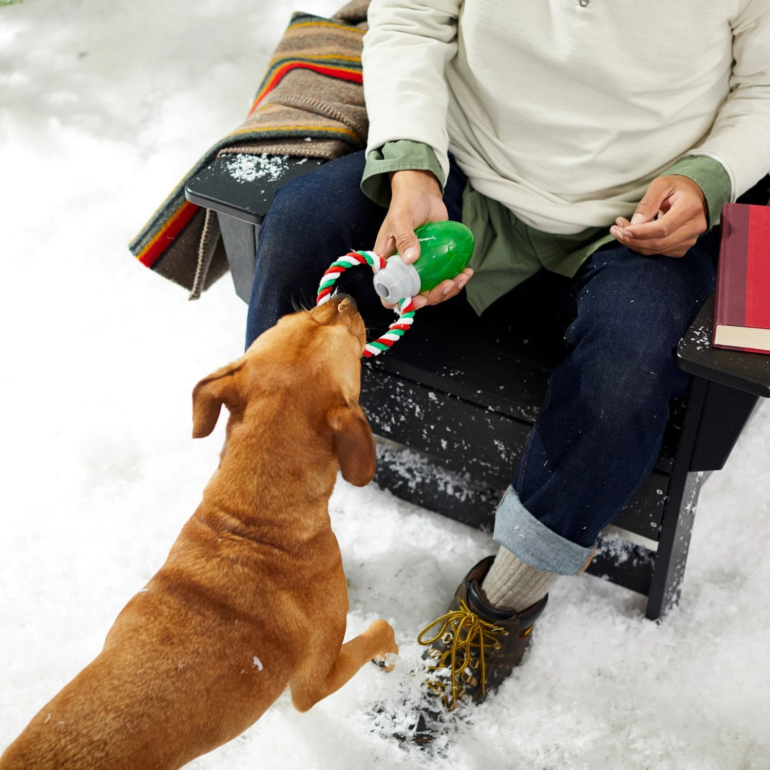 Light up your dog’s holiday season with this Christmas light TPR rope toy, from Frisco by Chewy! This toy has the best of a bite-able TPR toy and a classic cotton rope toy, so your dog can play any way they want. The TPR lightbulb includes a squeaker they’ll never get enough of, and the rope toy is great to bite and hold onto. Put one in your little pup’s stocking this year!