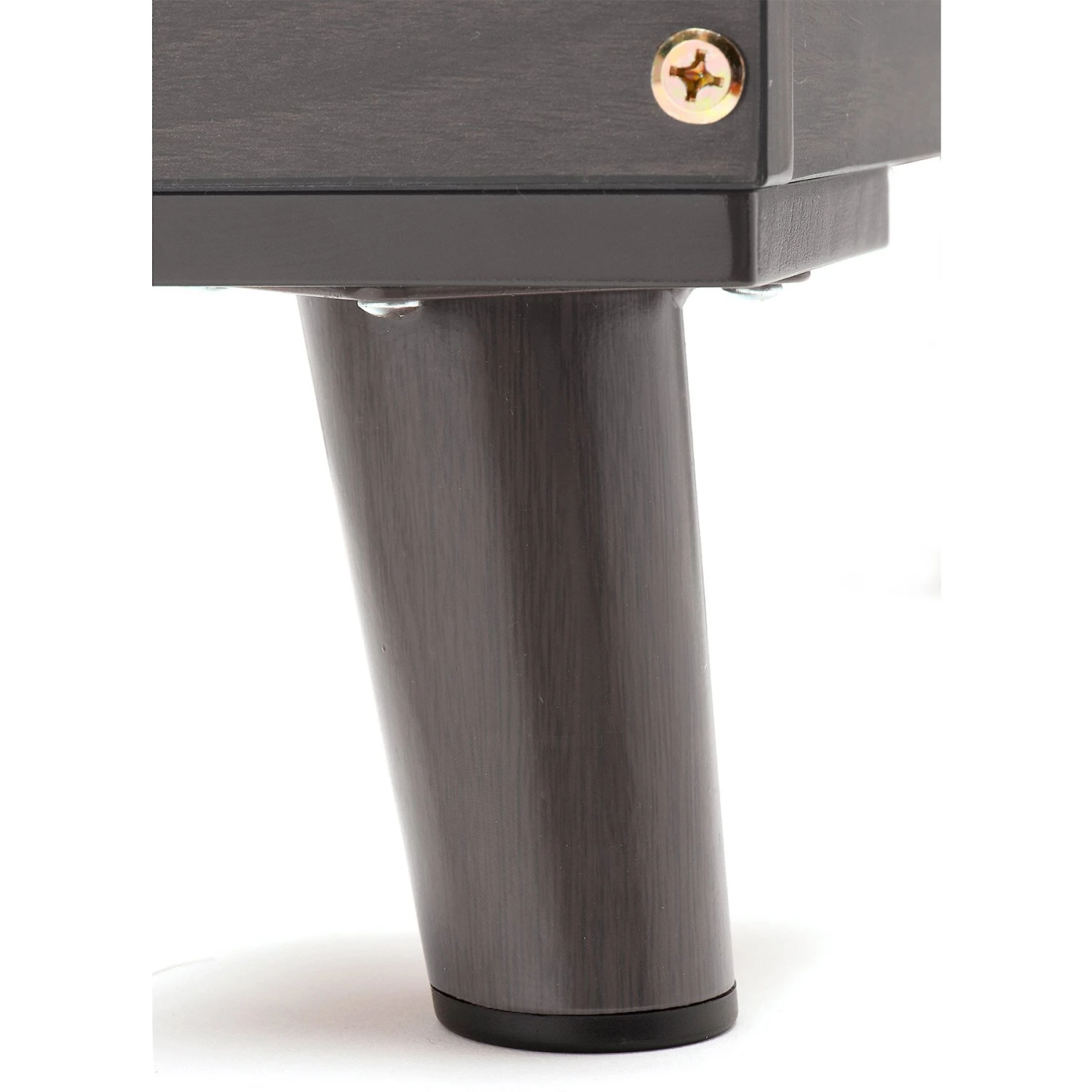 - Elevated bed frame with stylish wood-look veneer finishes.