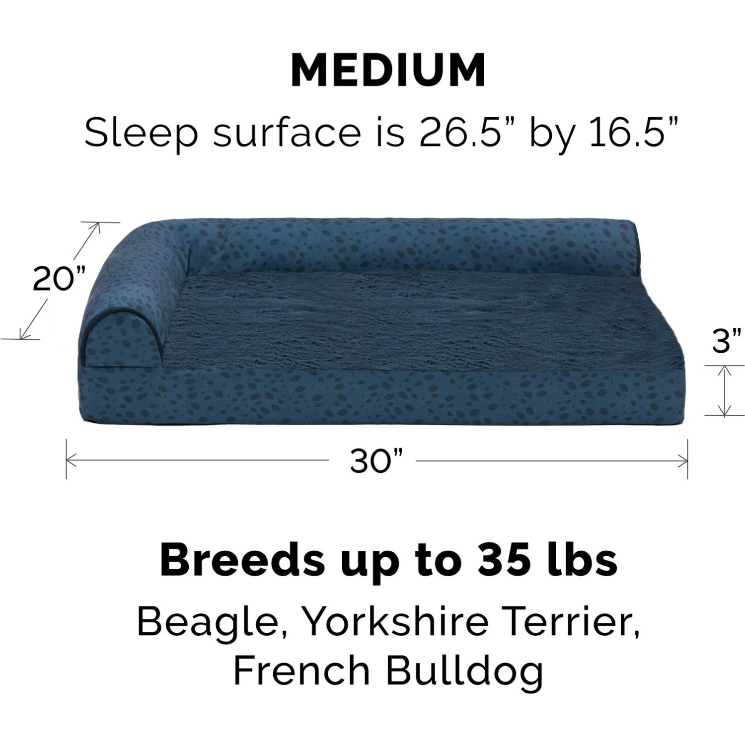 Pamper your pet with the FurHaven Plush Fur & Almond Print Orthopedic Deluxe L-Chaise Sofa Cat & Dog Bed! This L-shaped corner sofa is paw-fectly designed for dogs and cats. The egg crate orthopedic foam base helps cushion pressure points and improve air circulation, while fluff-filled bolster railings support your pal’s neck, back, hips and joints—these features work together to help ease discomfort and encourage more restful sleep. The sleep surface is wrapped in a cuddly soft, plush faux fur. Plus, the cover is machine washable for easy cleanups! This model includes extra orthopedic filling for supreme joint and muscle support. Sleep tight, furry friends!