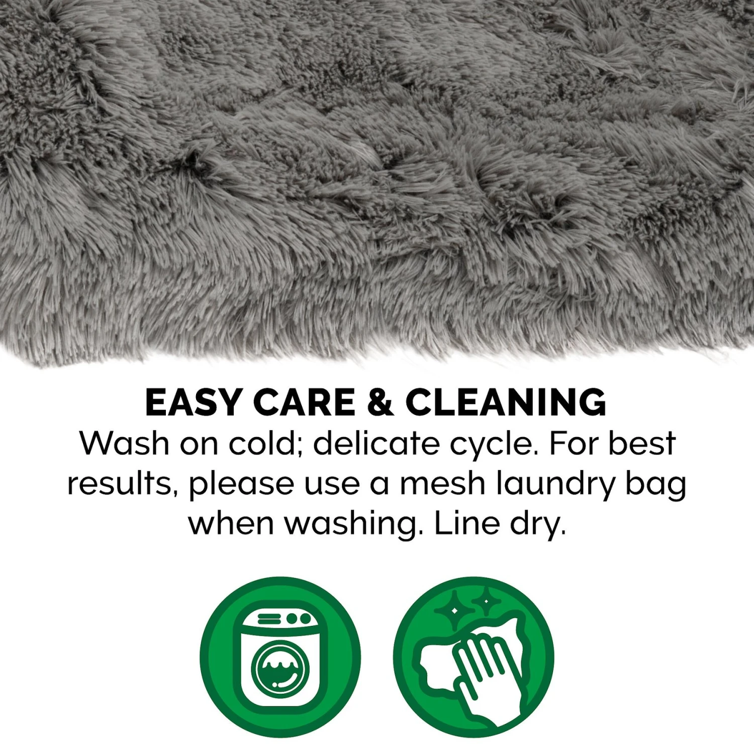 For best results: Remove excess debris and hair from mat before washing. Machine separately wash delicate cycle; cold. Do not bleach. Hang dry; air fluff.