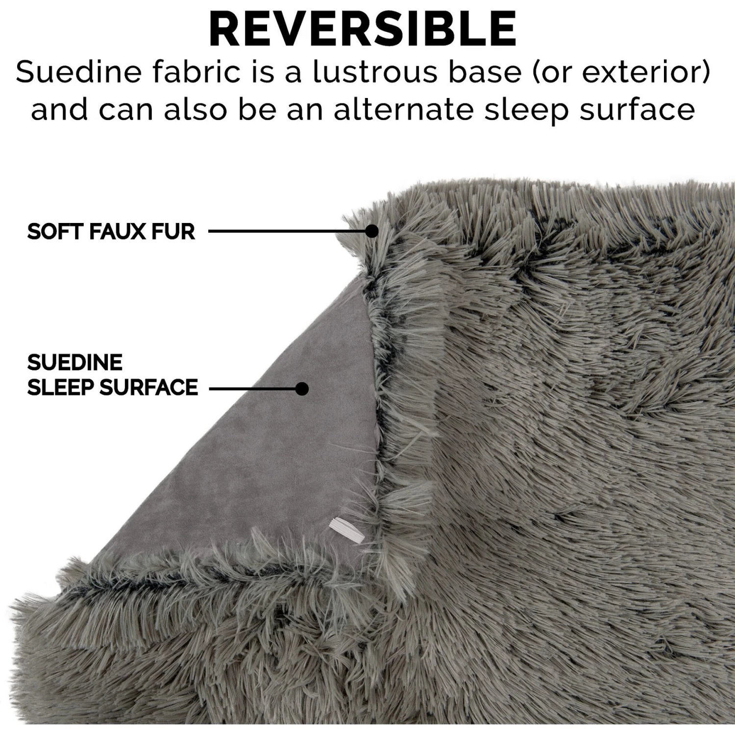 Give your furry family member the best of four worlds with FurHaven’s Self-Warming Convertible Cuddle Pet Bed & Mat. This unique piece can transform into four different designs—Nest, Couch, Canoe and Mat, all thanks to the simple button and elastic loop design (see video for step-by-step instructions). Whichever style your sidekick per-furs, she’s bound to love the self-warming comfort that the core has to offer. The core is designed with an insulating fabric that offers a soft surface and reflects your pet’s natural body heat back, creating a cozy, warm sleeping environment. Not only is the inside delightful but so is the suedine exterior. Best of all, this innovative piece is also completely machine washable for hassle-free cleaning!