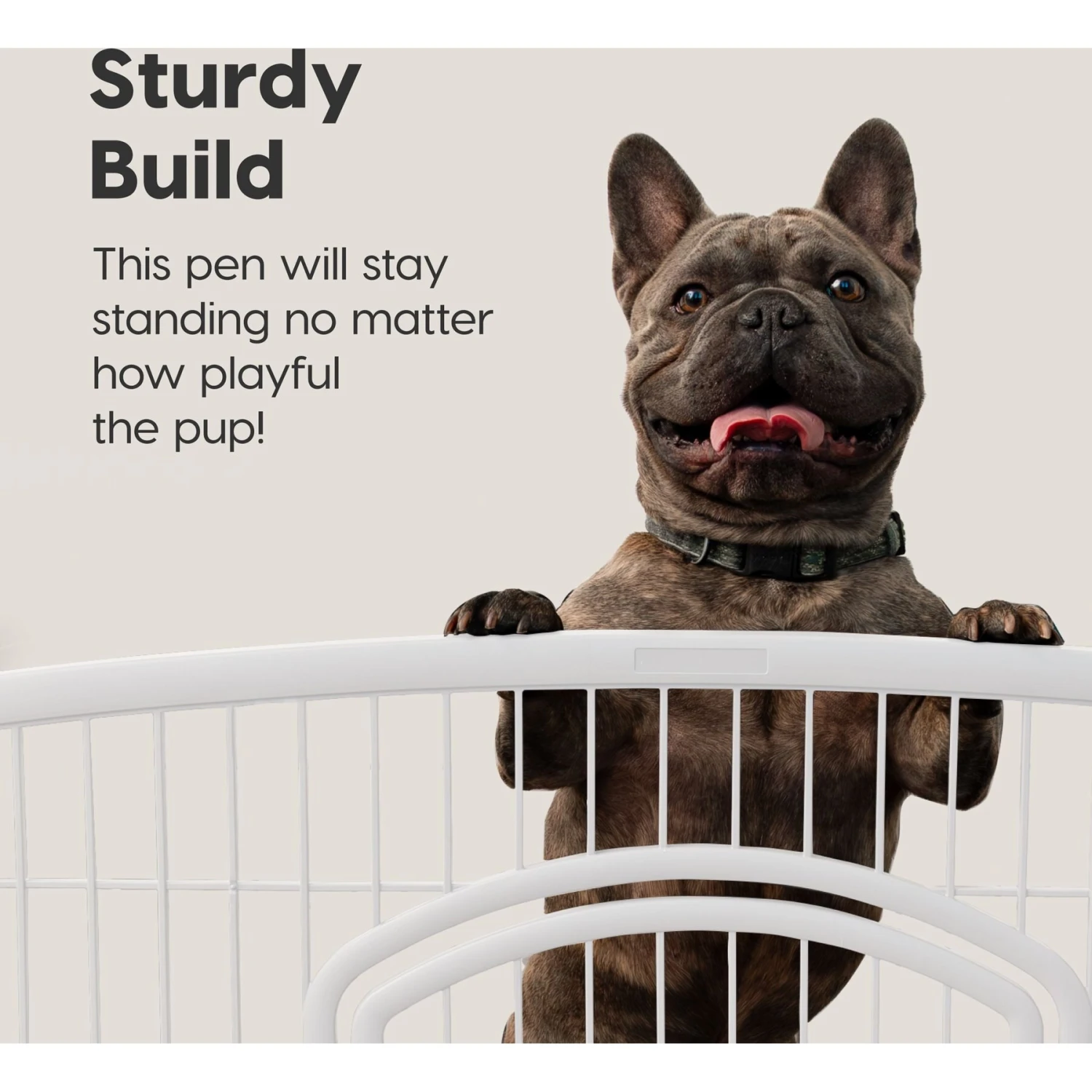 When you need your furry companion safely contained, the IRIS 4-Panel Exercise Plastic Playpen with Door is there to help! The portable design can be used indoors or outdoors, making it perfect and reliable in just about any situation. And since it covers 8 square of space, there’s plenty of room for pups to run around and play. It stands two feet high with a door that features double steel door latches, so you never have to worry about your little escape artist getting out. It’s easy to put together with no tools required, and the non-skip rubber foot on each panel protects flooring when used indoors.