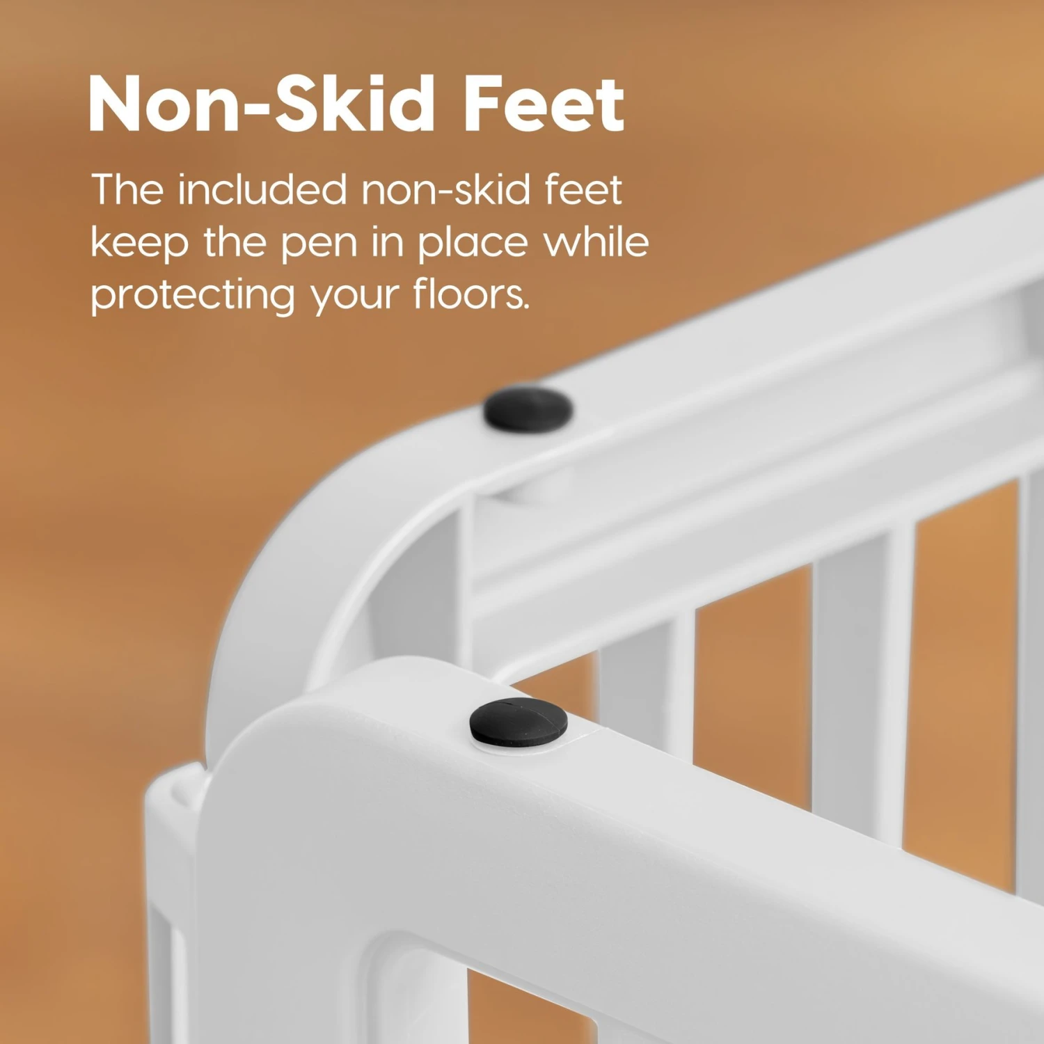 - Portable and versatile playpen can be used indoors or outdoors with 8 square feet of room.