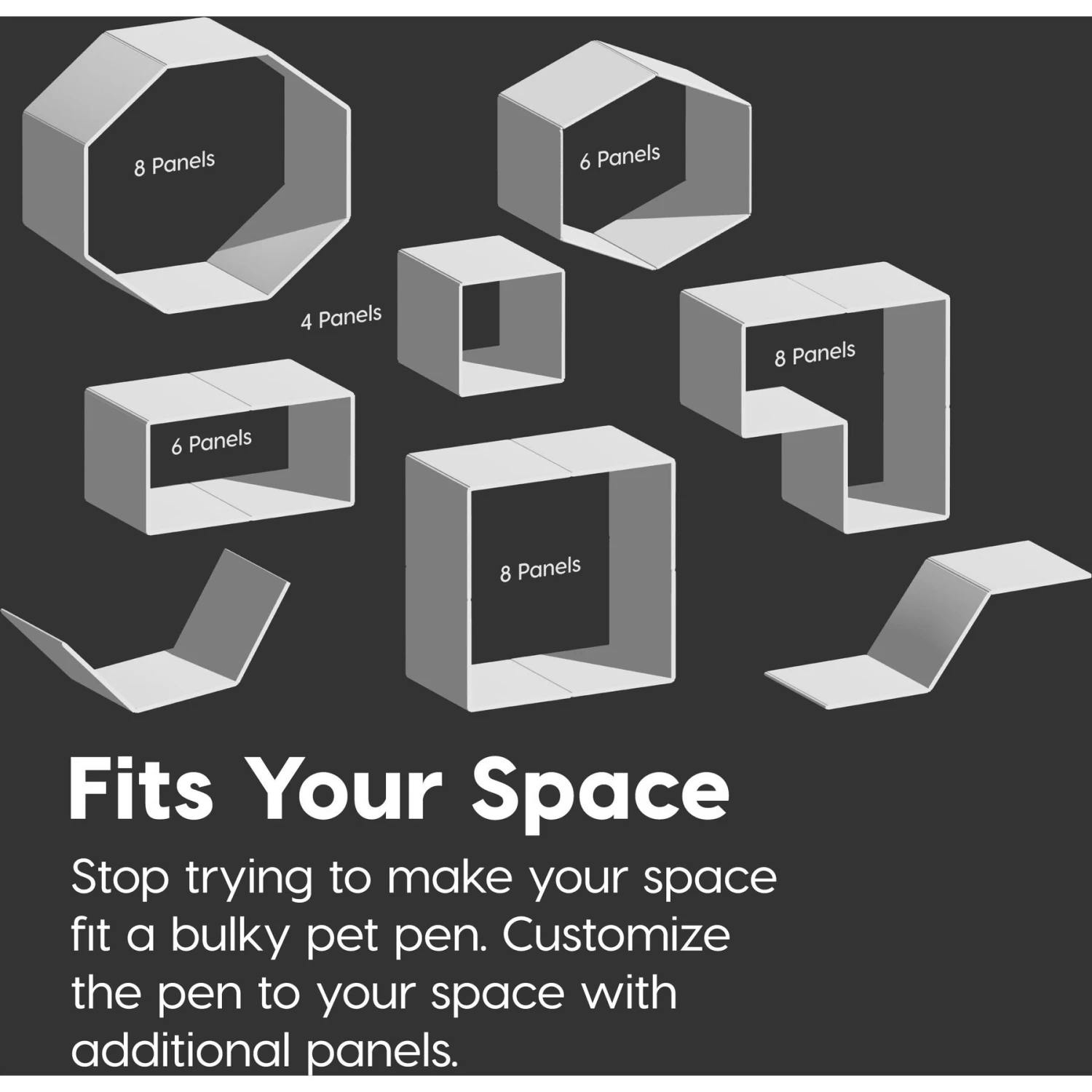 - Panels interlock securely with full-length connecting rods, and the pen can be positioned in different shapes to suit your needs.