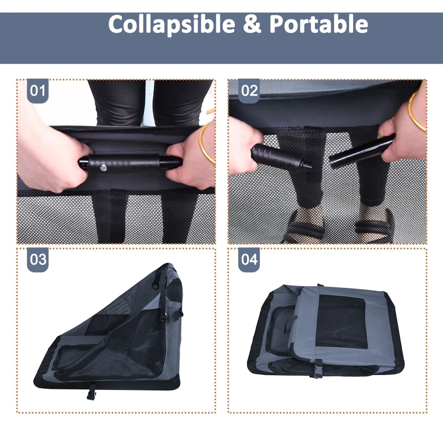 Give your furry friend a comfortable place to rest with the JesPet Soft-Sided Dog Crate. It features three entrance doors for easy access and to provide your paw-tner with plenty of ventilation. This crate is made of strong steel tubes while the cover is made with durable washable 600D fabric and hex mesh fabric to withstand the outdoors. It also includes a fleece bed and adjustable straps for comfort and convenience. With collapsible bars and retractable springs, JesPet Soft-Sided Dog Crate is simple to break down and store away.