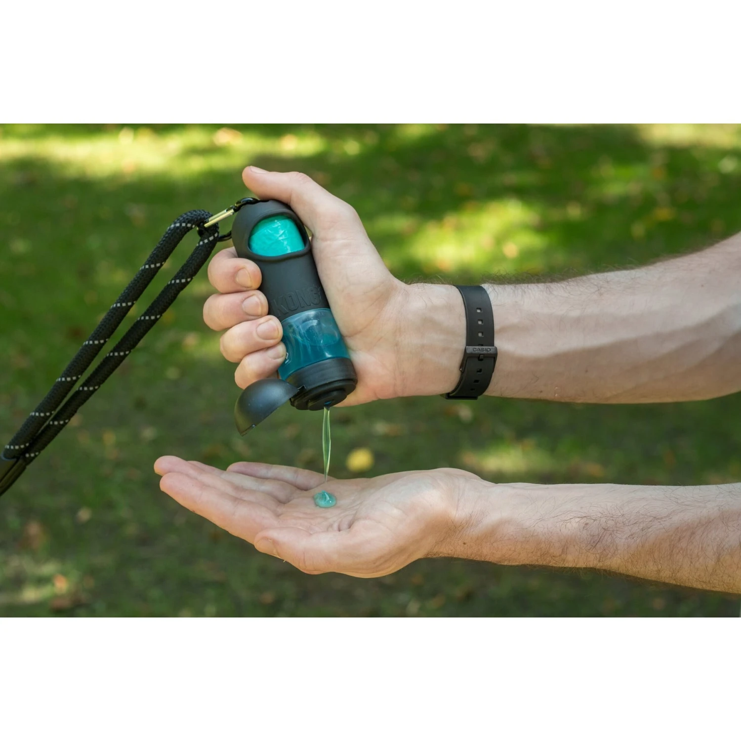 Be ready to dash out the door when nature calls for your pooch with the KONG HandiPOD Clean Dog Poop Bag Dispenser. It keeps waste bags and antibacterial hand sanitizer together so you always have the necessities ready to go. The biodegradable waste bags have a durable design for confident poo pick up and handles for tying and easy holding when filled. Antibacterial hand sanitizer leaves hands feeling clean and refreshed after slobbery playtime or potty breaks. Simply use the carabiner clip to attach it to your leash, bag or belt loop for hands-free holding.