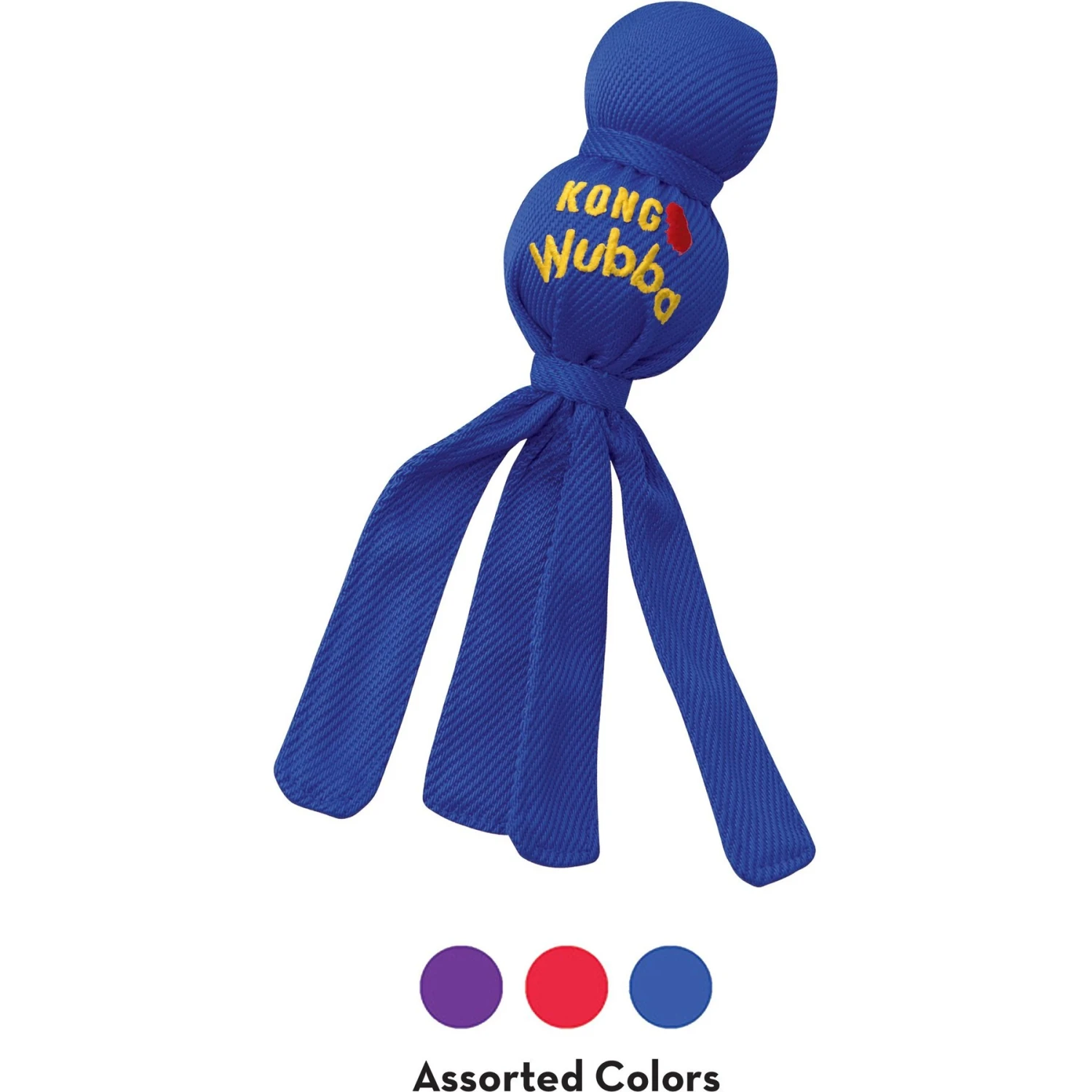 The classic toss and tug toy for active pups! Wubba Classic Dog Toys from KONG are a tail-wag inducing toy made for entertaining games of tug and fetch. The durable nylon outer contains two balls- a tennis ball for bouncing and a squeaky ball for chew time. The long tails are easy to grab and throw, and great to hold on when Skipper wants a game of tug.