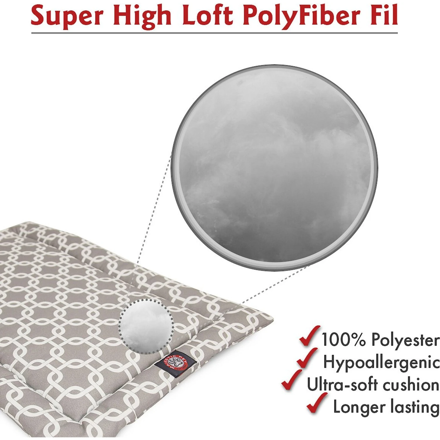 Make sure that Rex is well rested before his next adventure with the Majestic Pet Personalized Links Dog Crate Mat. This pillow-like dog bed is stuffed with premium, high-loft polyester fiber for your sidekick to snuggle up on. It is paw-fect for use in crates, carriers, dog houses, vehicles, cages or just around the house. Machine-washable for easy cleaning, this comfy crate bed for dogs is woven from durable polyester and cotton for long-lasting use. It can even be personalized with your pet pal’s name on top, so he will always know where to lay his head.