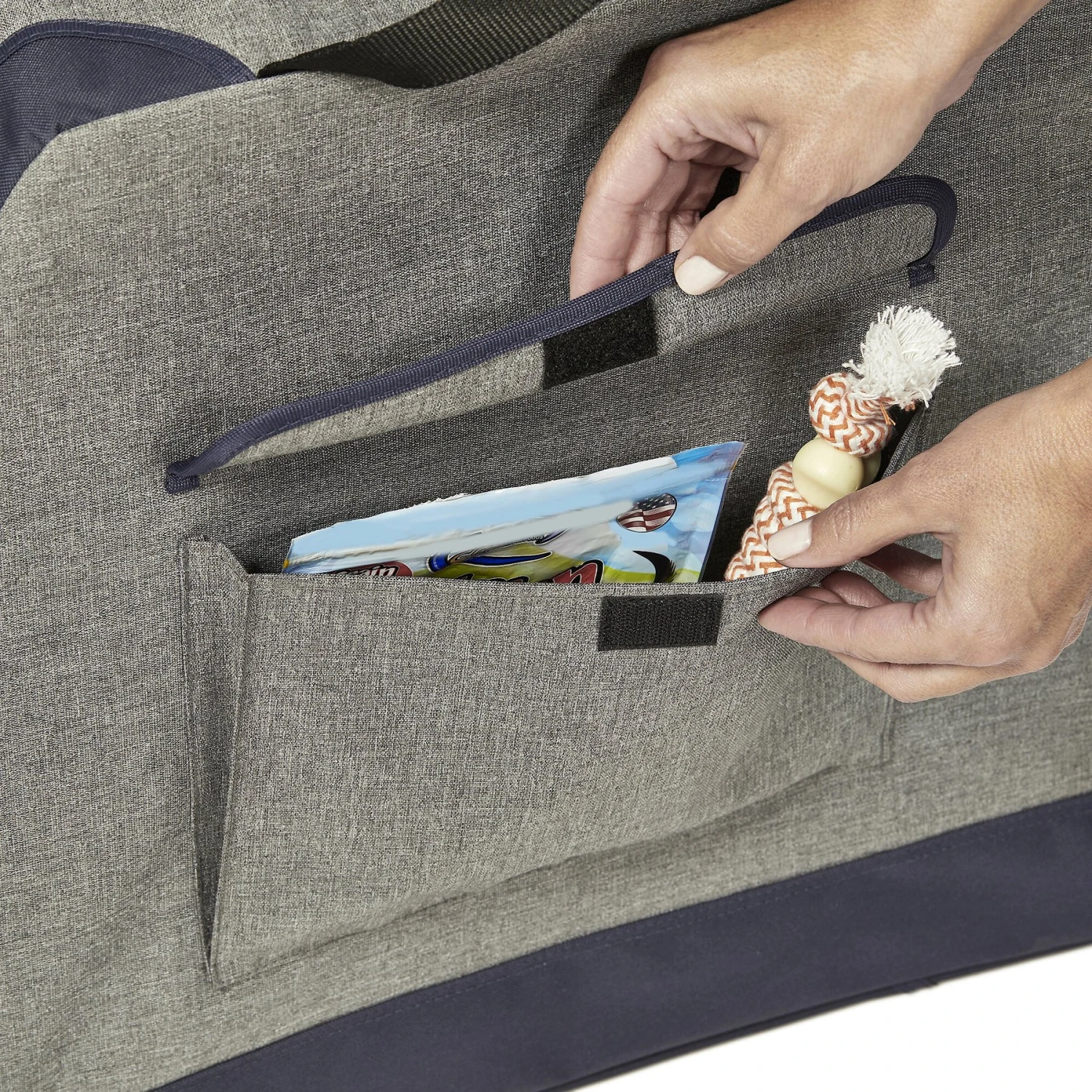 Dogs on the go love the MidWest Canine Camper Dog Tent Crate—it’s perfect for the outdoors, travel, or even home use. It sets up in a few minutes—no tools required—and folds down for easy storage. The durable crate, made with a steel tube frame, features locking zippers, front and top door access, reinforced corners, no-slip feet, and large ventilated mesh windows. There’s even a convenient carrying strap and handle, making it an essential travel accessory.