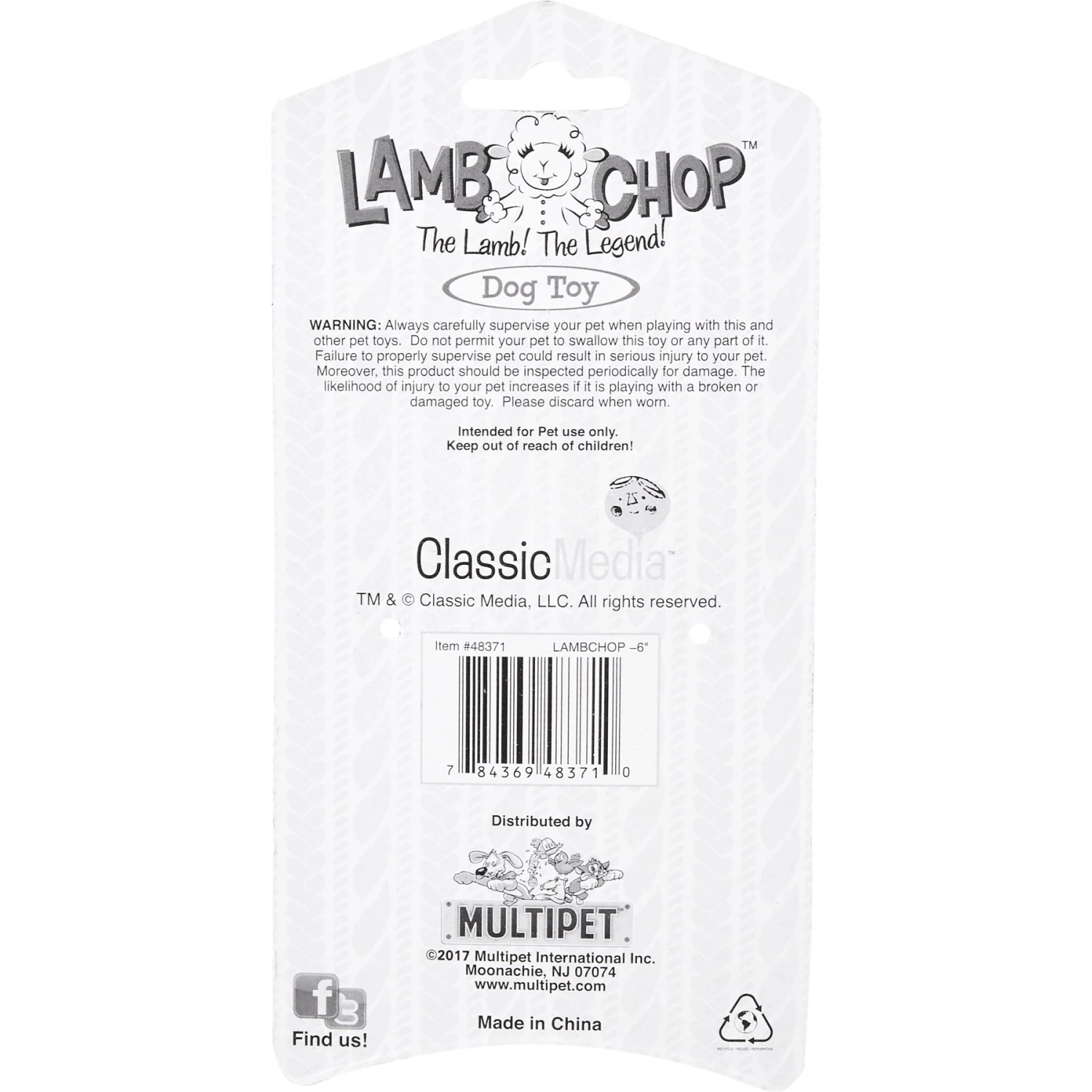 Multipet Lamb Chop Squeaky Plush Dog Toy, Regular—Nostalgic for you and big, adorable fun for your pooch, Lamb Chop will be an instant family fave. Whether you and your pup are playing a frisky game of fetch, launching Lamp Chop high in the air or happily squeaking her, this beloved character brings along instant joy for pups and peeps.