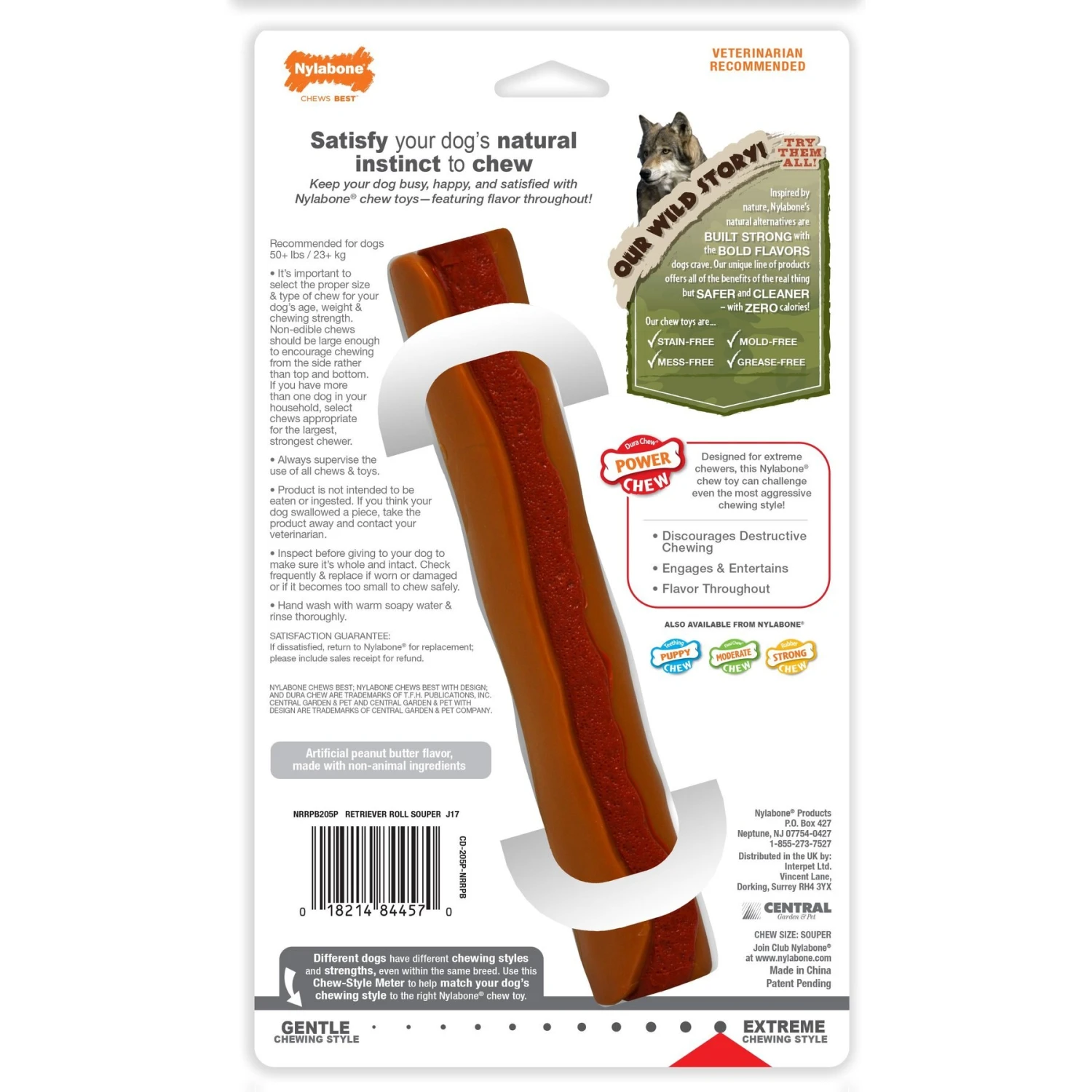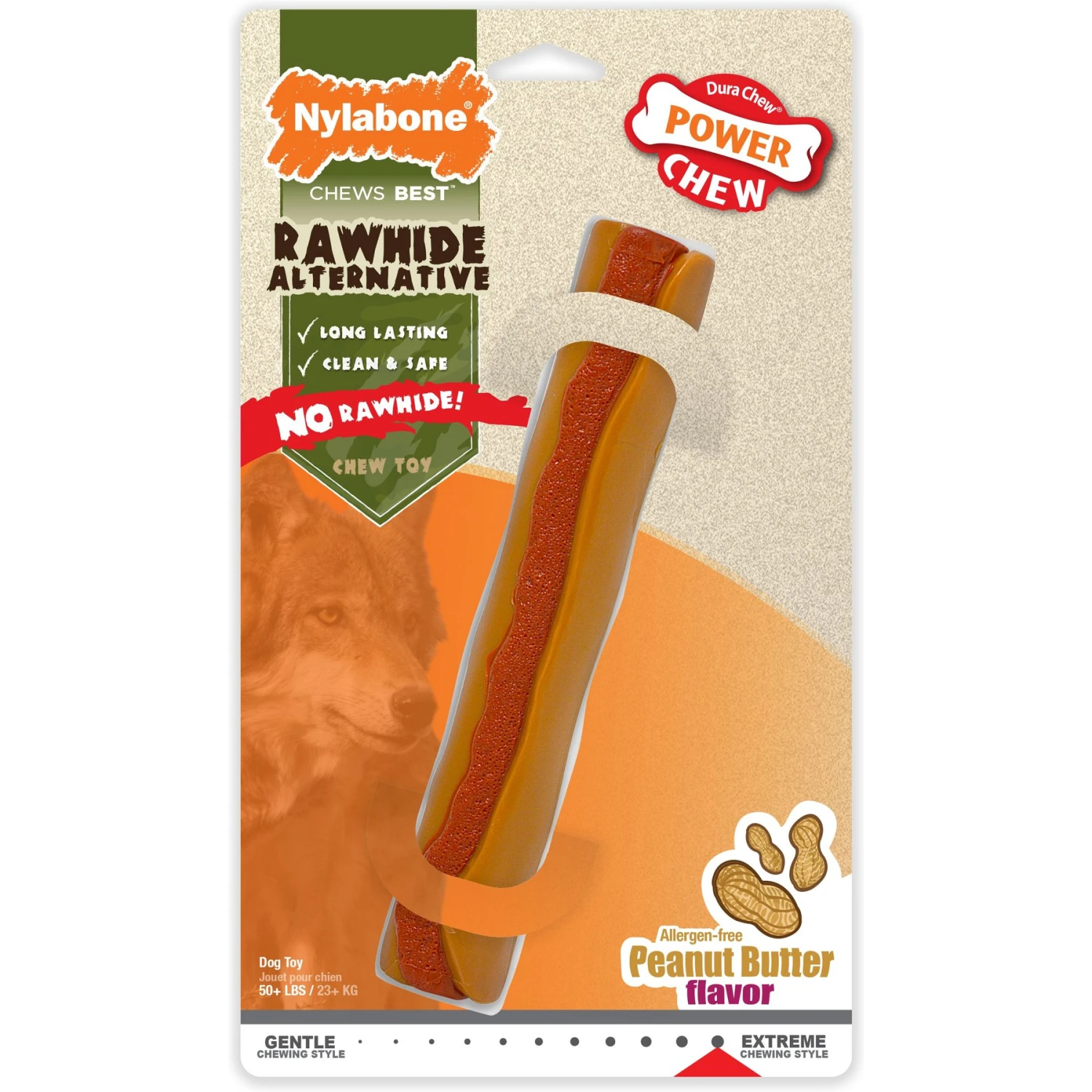 - This long-lasting chew toy is made of durable nylon to challenge powerful chewers.