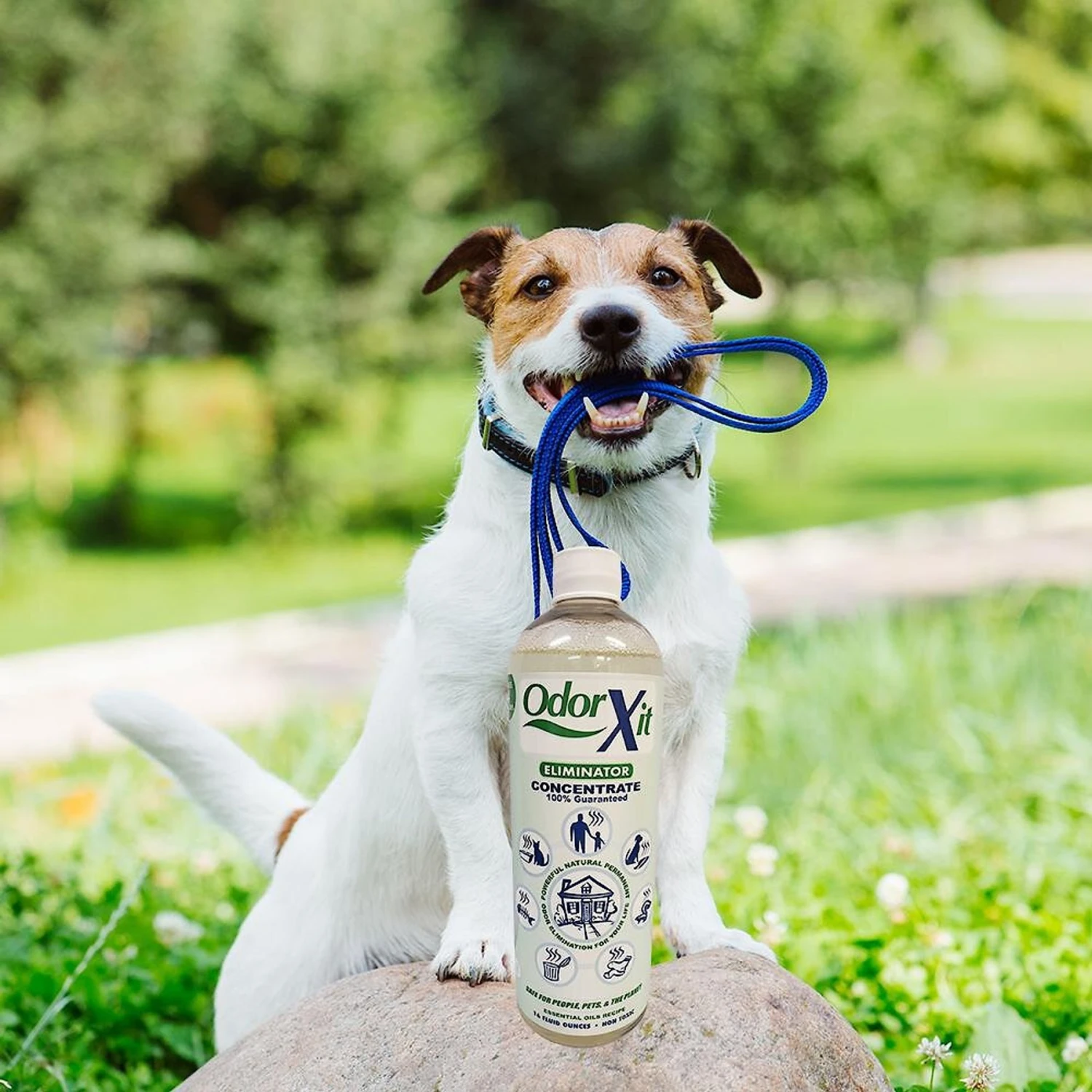 Help combat unwanted odors with OdorXit Concentrate Odor Remover. Formulated with water and essential oils, this solution works to naturally fight pungent smells caused by a variety of sources including skunk spray, body odor, urine and other accidents caused by pets. And since it’s non-toxic, non-irritating and 100% free of added fragrances and enzymes, it’s safe to use on and around your favorite furry friend. It can also be used on almost any surface, including clothes, bedding, furniture, hardwood floors, carpet, mattresses and more!