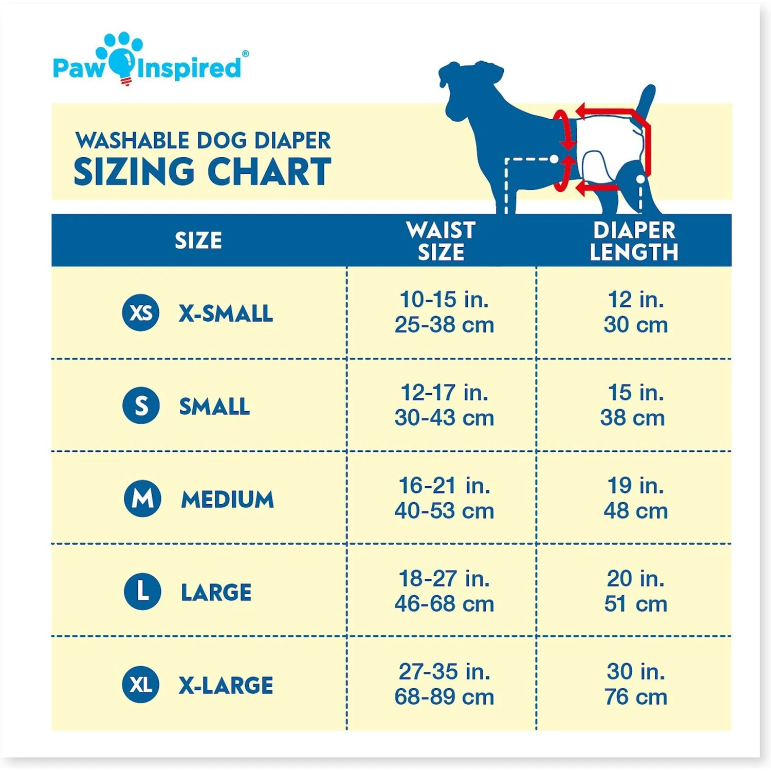 Go eco-friendly and cost-efficient with Paw Inspired Washable Dog Diapers—a long-lasting solution to costly disposable diapers. These female pet wraps help protect your home from potty training accidents, a dog in heat, excitable urination or incontinence. Each diaper is made with ultra-absorbent, breathable material that keeps your furbaby comfortable and dry. The machine-washable fabric offers soft and stylish protection alone or as a cover for disposable diapers or a pad. Plus, they’re easy to take on and off with adjustable fasteners that won’t stick to your best friend’s fur.