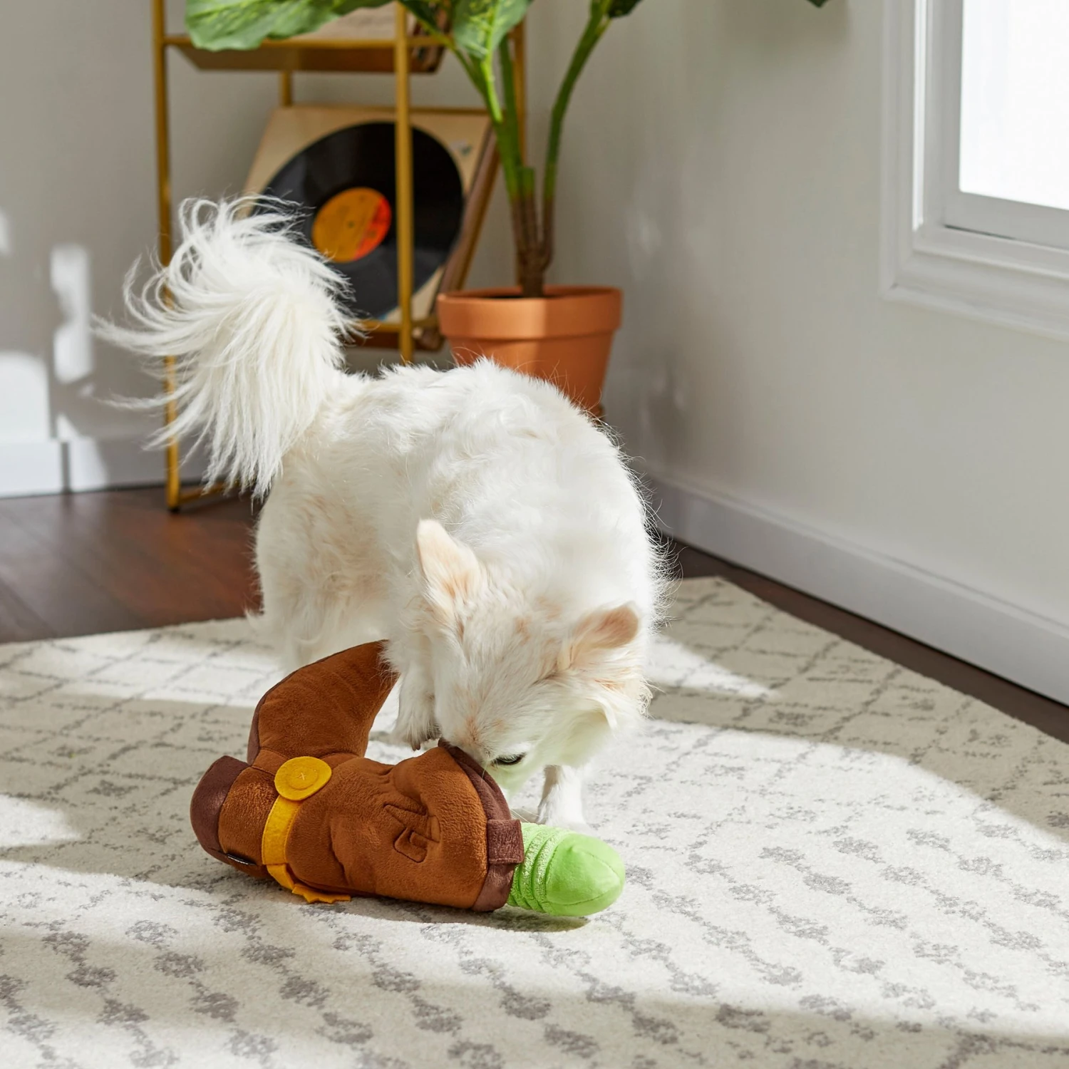 - Toy Story Woody’s boot plush reminds your pup they’ve always got a friend in their toy box.