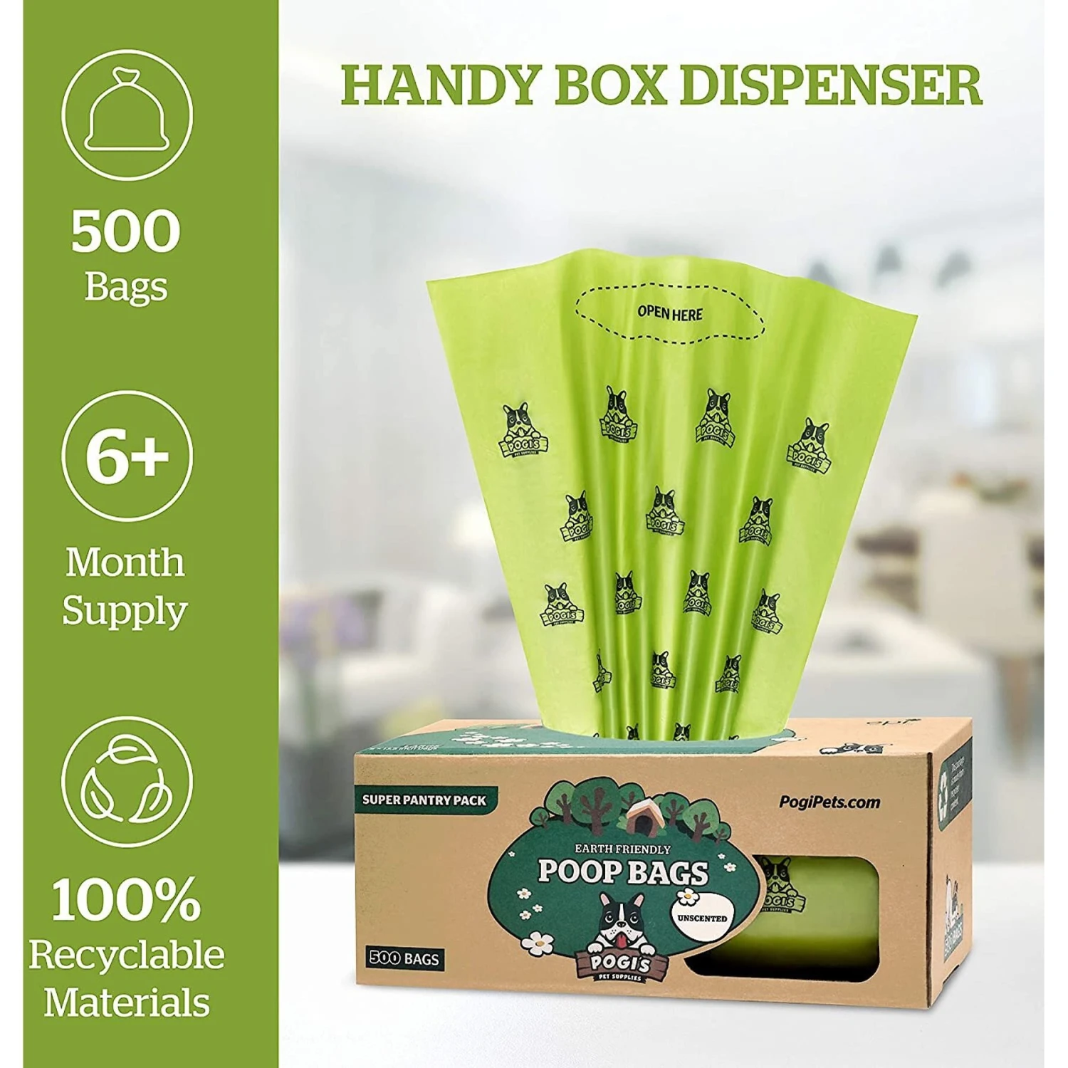 Go green and stay clean with Pogi’s Pet Supplies Pantry Pack Poop Bags! Each leak-free bag measures 9 x 13.5 inches to help you take care of your pup’s business—big or small. They’re also an easy option for cat box litter cleanup. And when you and your pet finish this Super Pantry Pack, you can recycle the cardboard core and packaging for a full answer to nature’s call.