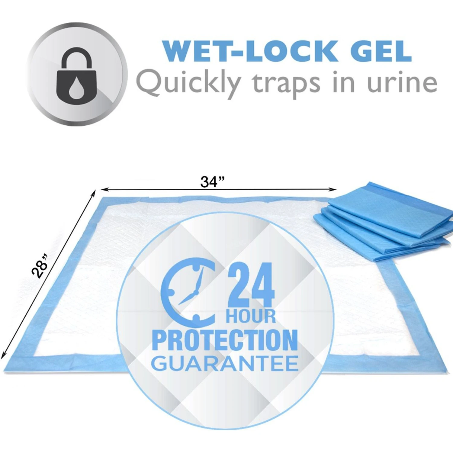 Wee-Wee Extra Large Puppy Pee Pads, 28 x 34-in, 75 count, Unscented—Four Paws Wee-Wee Superior Performance Dog Pads are 80% larger and more absorbent than your average dog training pads. These heavy-duty, six-ply pads feature a quilted top layer and two moisture-locking layers for maximum absorption. They also have a leak-proof backing to keep your floors nice and dry! All Wee-Wee dog pee pads also include a targeted attractant to draw your paw-tner to the pad and prevent potty training accidents elsewhere. These extra-large pads are paw-fect for furry friends of all sizes and homes with multiple canine companions!
