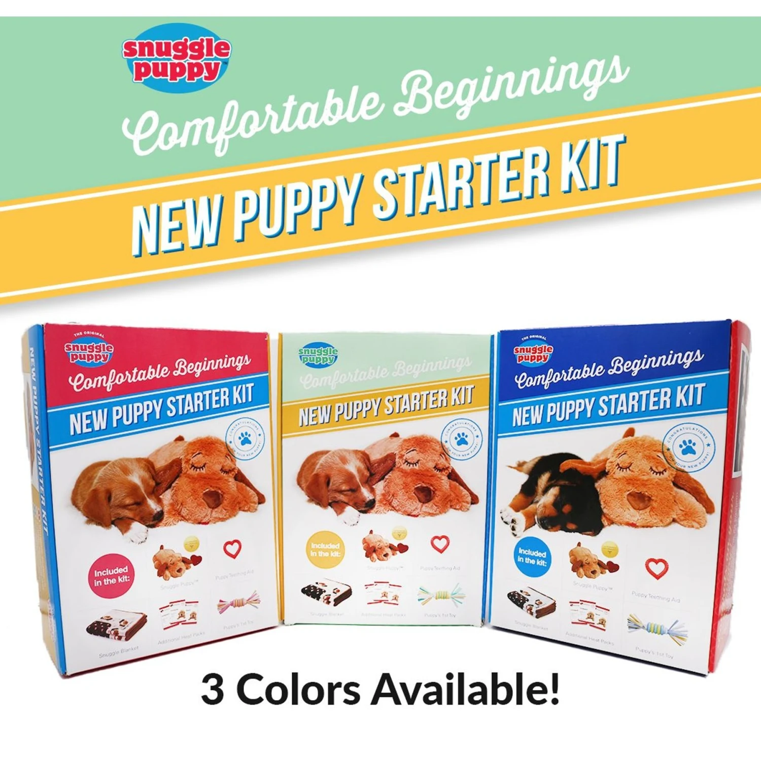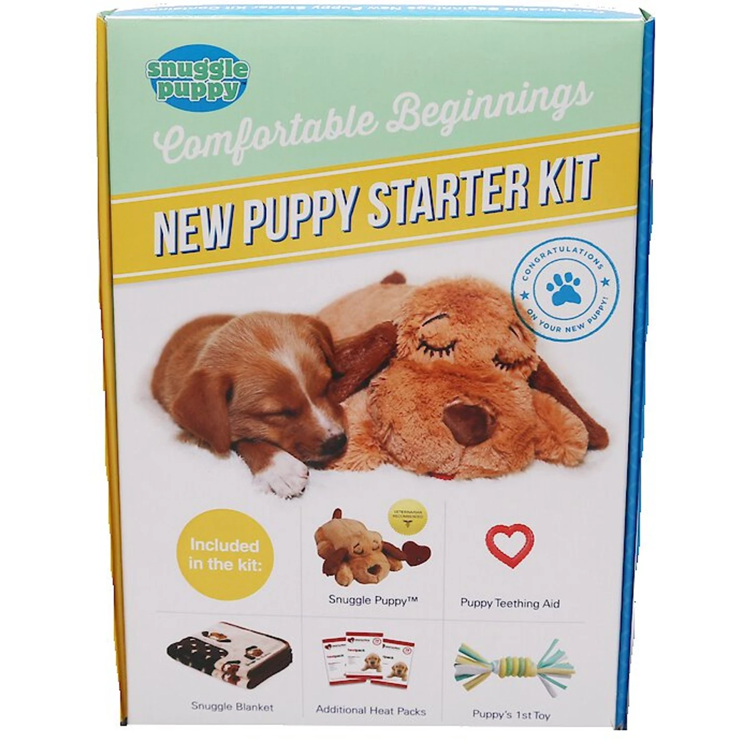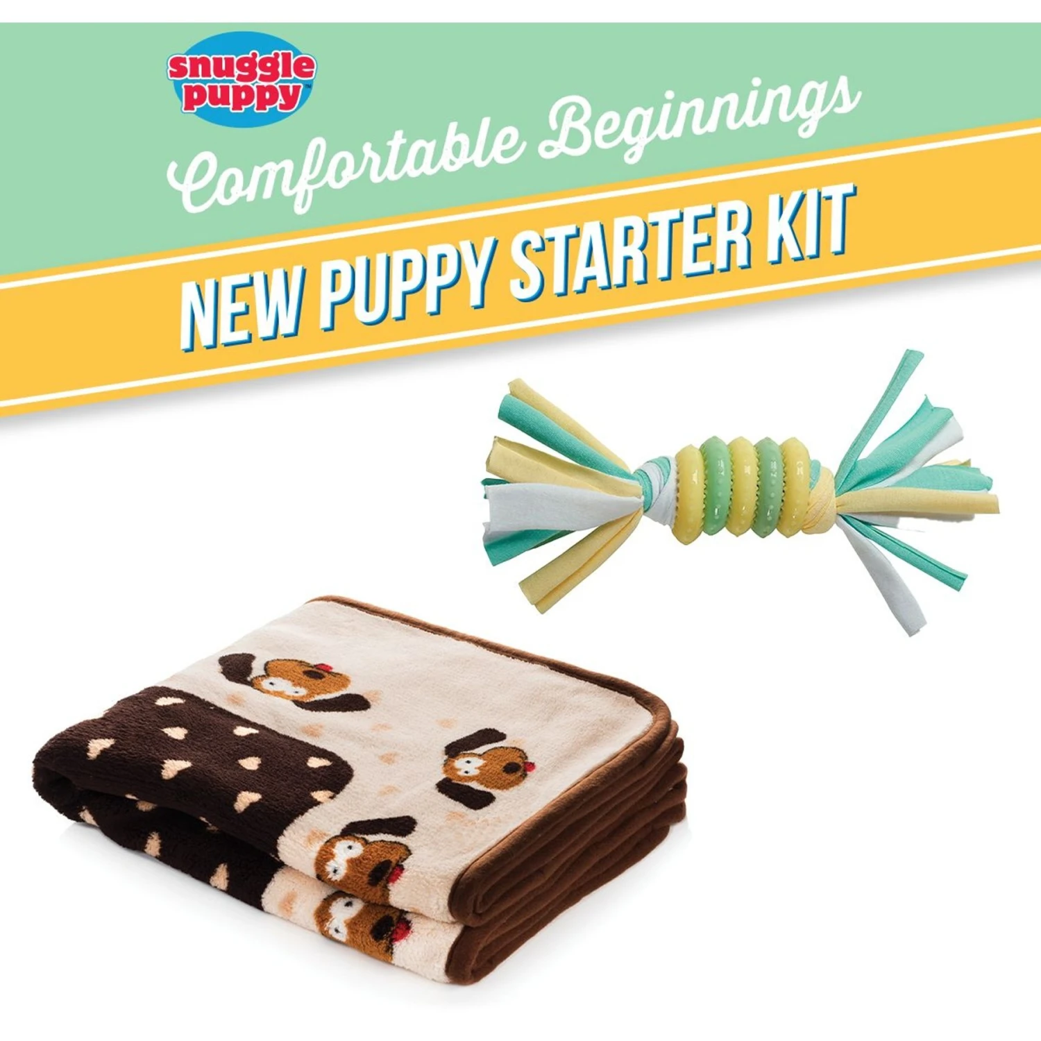 Start your puppy off on the right paw with the Snuggle Puppy Comfortable Beginnings New Puppy Starter Kit! This paw-some kit contains an Original Snuggle Puppy, three Heat Packs, Snuggle Puppy Blanket, Puppy’s 1st Toy and Puppy Teething Ring. All these paw-fect items help smooth your new puppy’s transition into your home, while easing stress. Comforting your little pooch is easy with the blanket that provides extra warmth and security, while catching and holding shedding hair. You’ll sleep more and help reduce your pup’s negative behaviors as this kit aids in crate and kennel training by decreasing barking, whining and anxiety.