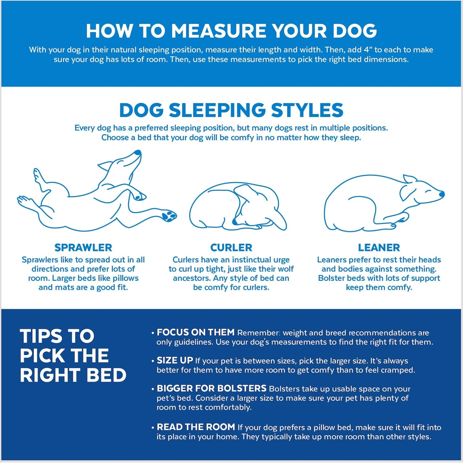 - Provides all-around comfort with wrap-around bolsters, a poly-fill cushion and a super-soft sleeping surface.